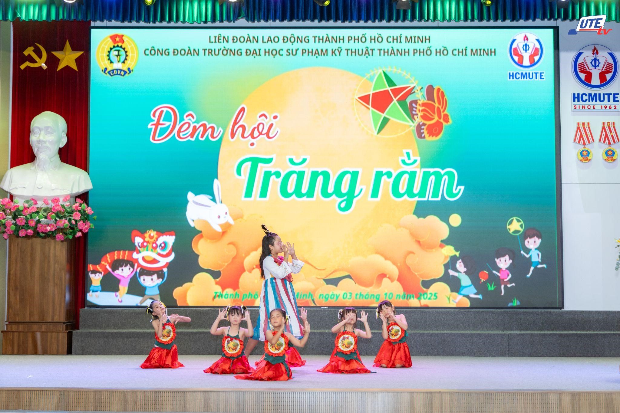 In harmony with the joyful spirit of the Mid-Autumn Festival, on the evening of October 3, 2025 (the 12th day of the 8th lunar month), the Trade Union of Ho Chi Minh City University of Technology and Education (HCMUTE) organized the “Mid-Autumn Festival Night 2025” program for the children of the university’s staff and employees.