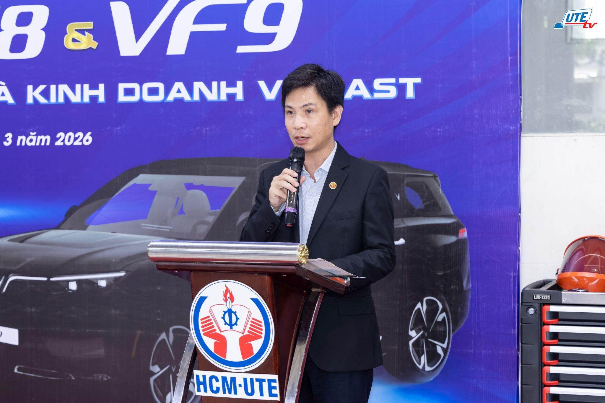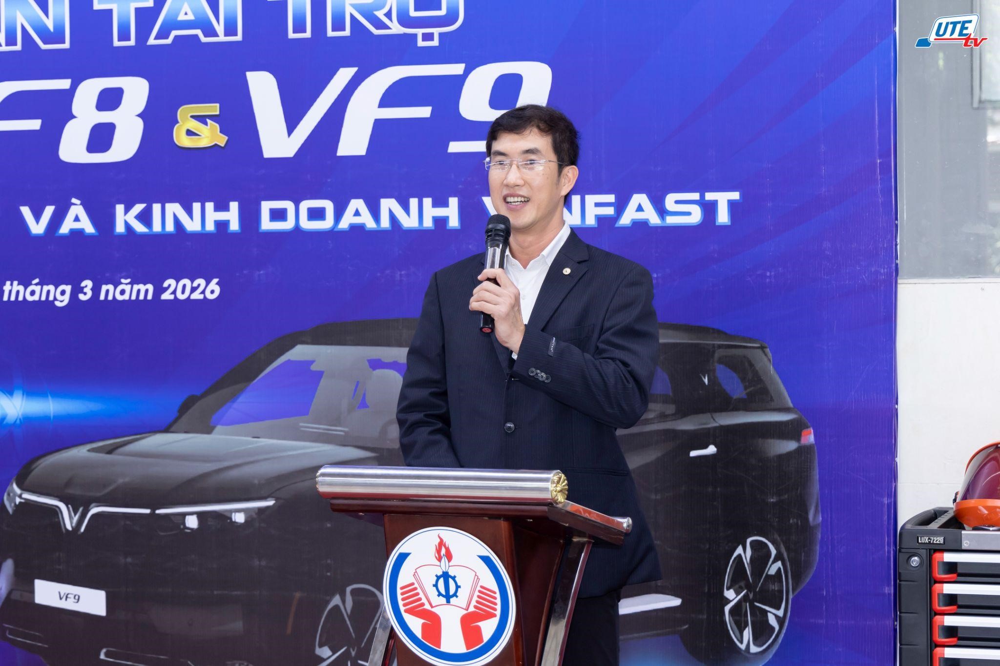 In his remarks, Assoc. Prof. Dr. Chau Dinh Thanh, Vice President of HCM-UTE, emphasized that the university consistently prioritizes expanding partnerships with enterprises to enhance training quality, especially in emerging technological fields. Receiving the donation from VinFast not only enables students to access modern equipment but also contributes to innovating the curriculum toward greater practical application and international integration.