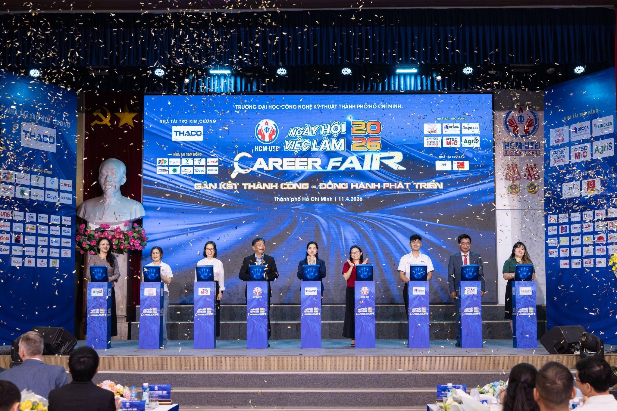 On the morning of April 11, 2026, at the Grand Hall (Block A), Ho Chi Minh City University of Technology and Engineering (HCM-UTE, formerly Ho Chi Minh City University of Technology and Education) held the opening ceremony of the 2026 Networking – Recruitment – Career Fair. With the message “Connect to succeed - cooperate to flourish”, the event attracted 75 companies with 106 booths, offering more than 1,000 job opportunities across various fields for students, including engineering, economics, finance, and more.