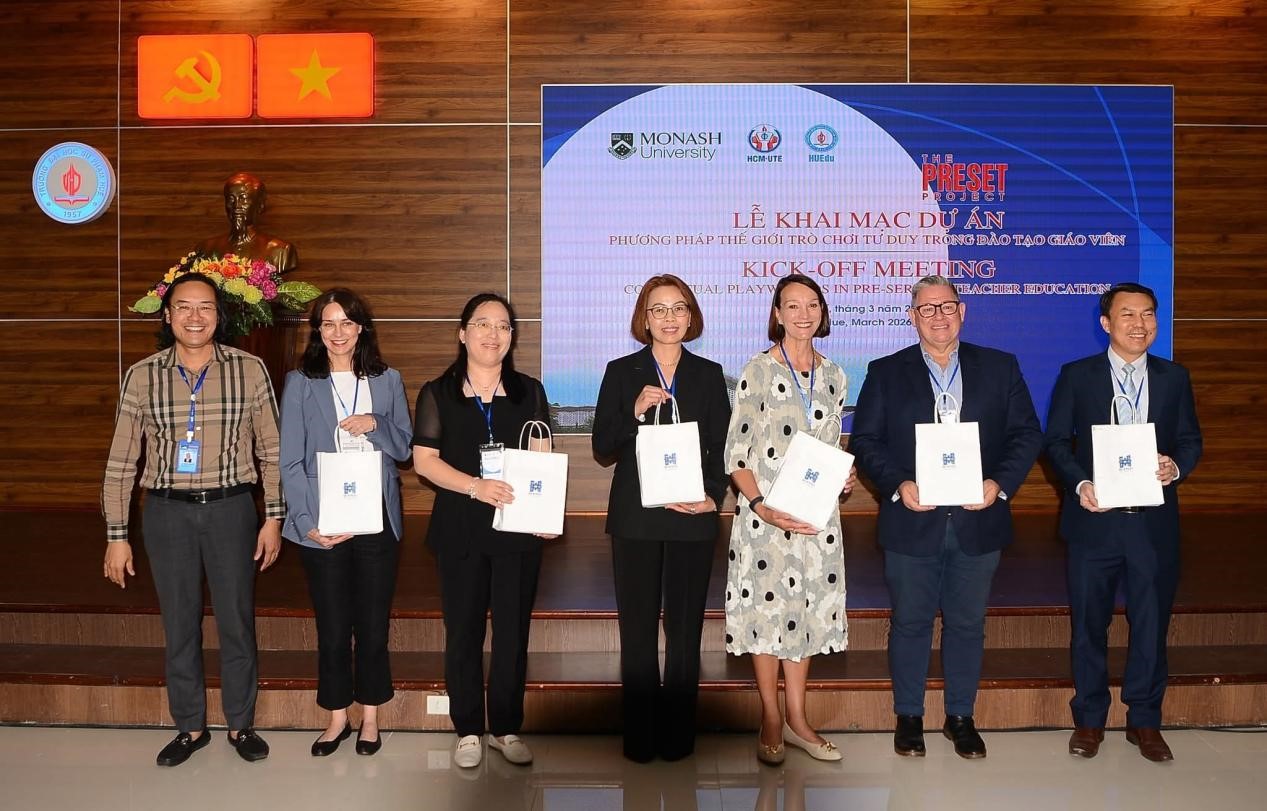 To operationalize the Memorandum of Understanding (MOU) signed on 27 November 2025 between HCM-UTE and Monash University, Australia, the official launch of the Playful Research and Education for Sustainable Education and Teaching (PRESET) project was held at Hue University of Education and Vinh University in Vietnam.