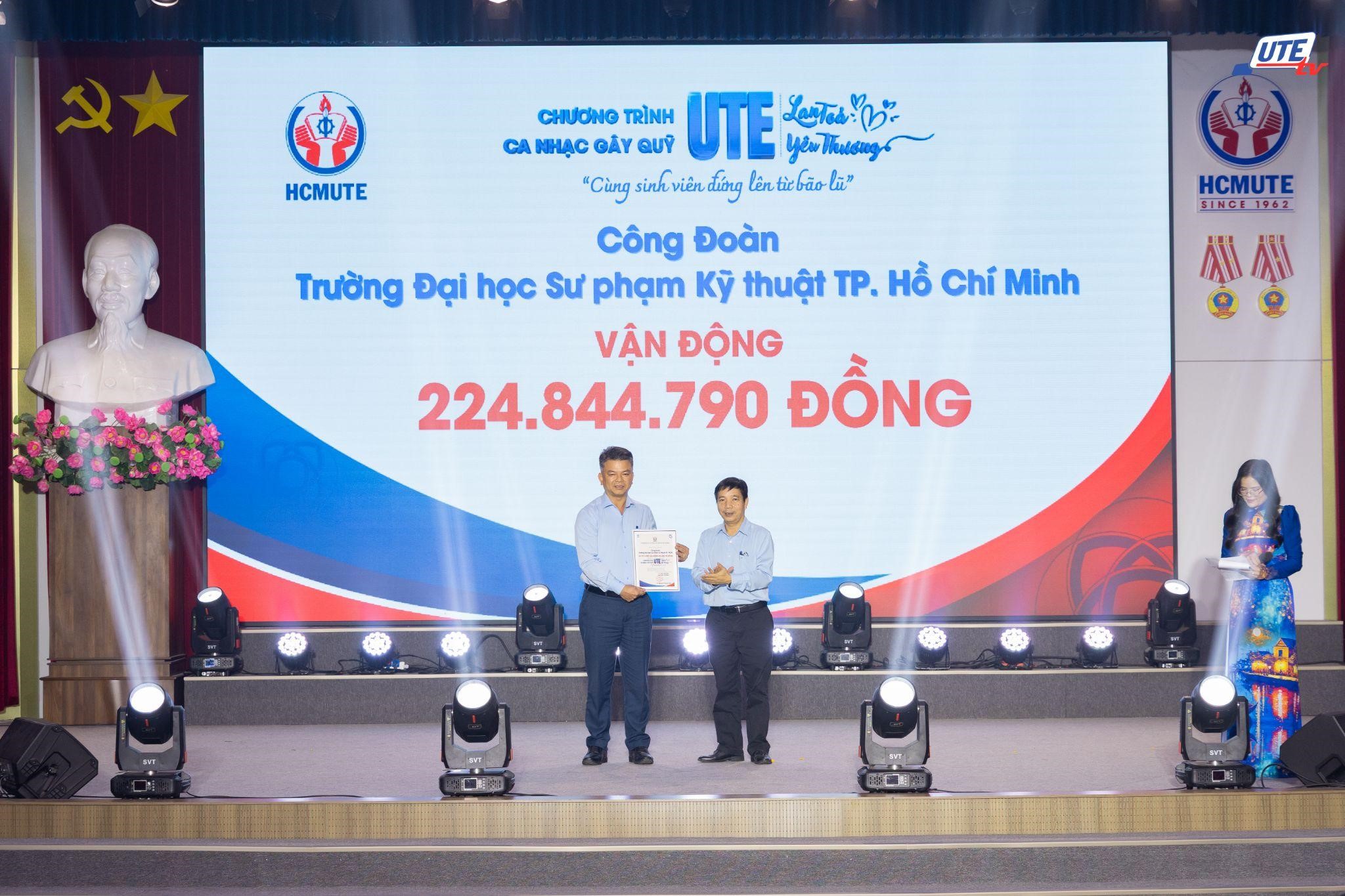 • The Trade Union of HCMUTE, which mobilized VND 324,844,790 (including VND 100,000,000 already transferred to the Vietnam Fatherland Front in accordance with Notice No. 114/TB-CD dated November 24, 2025);