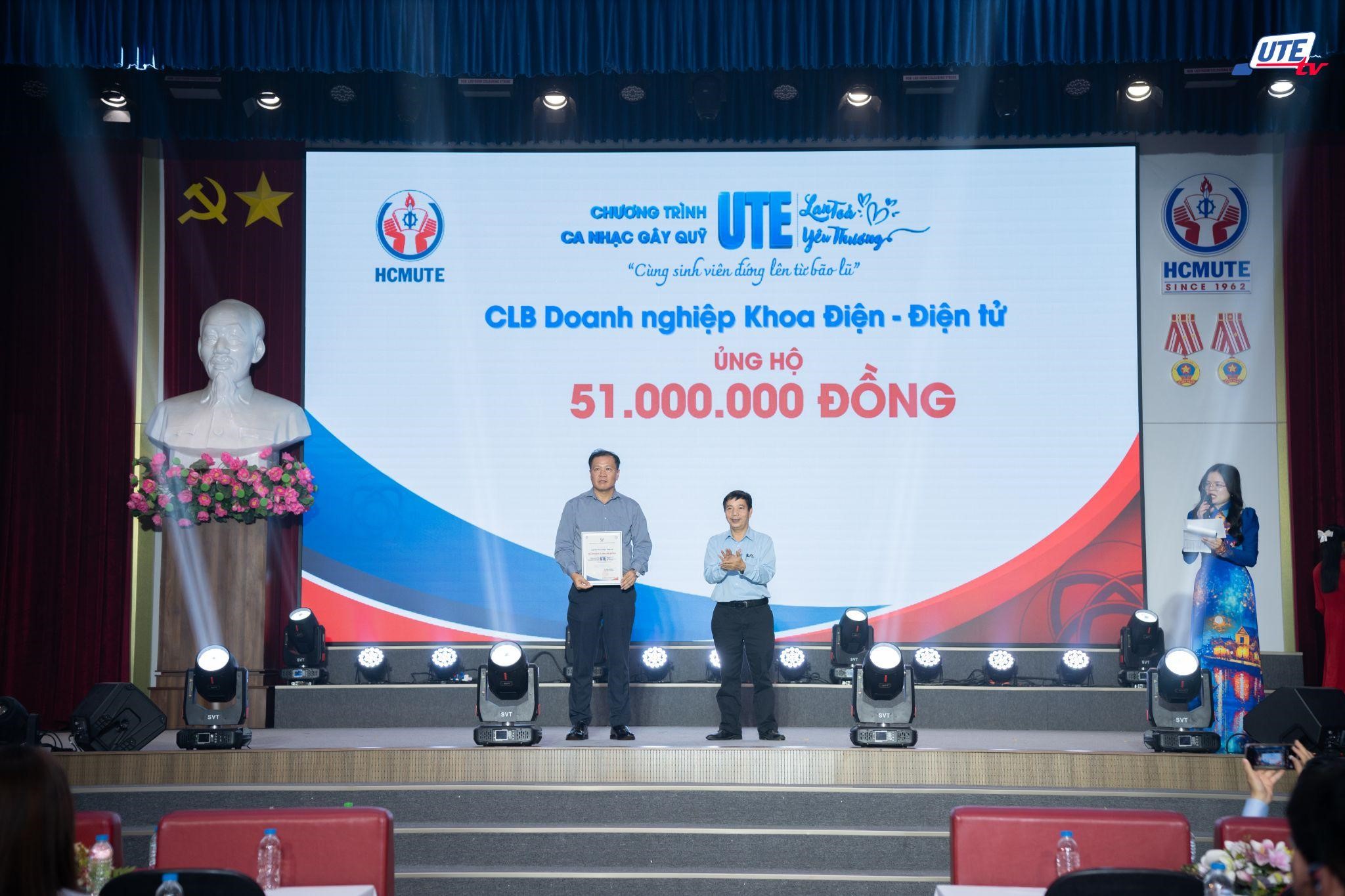 • The Alumni Business Club of the Faculty of Electrical and Electronics Engineering, contributing VND 51,000,000 to support students of the Faculty whose families were affected by floods;