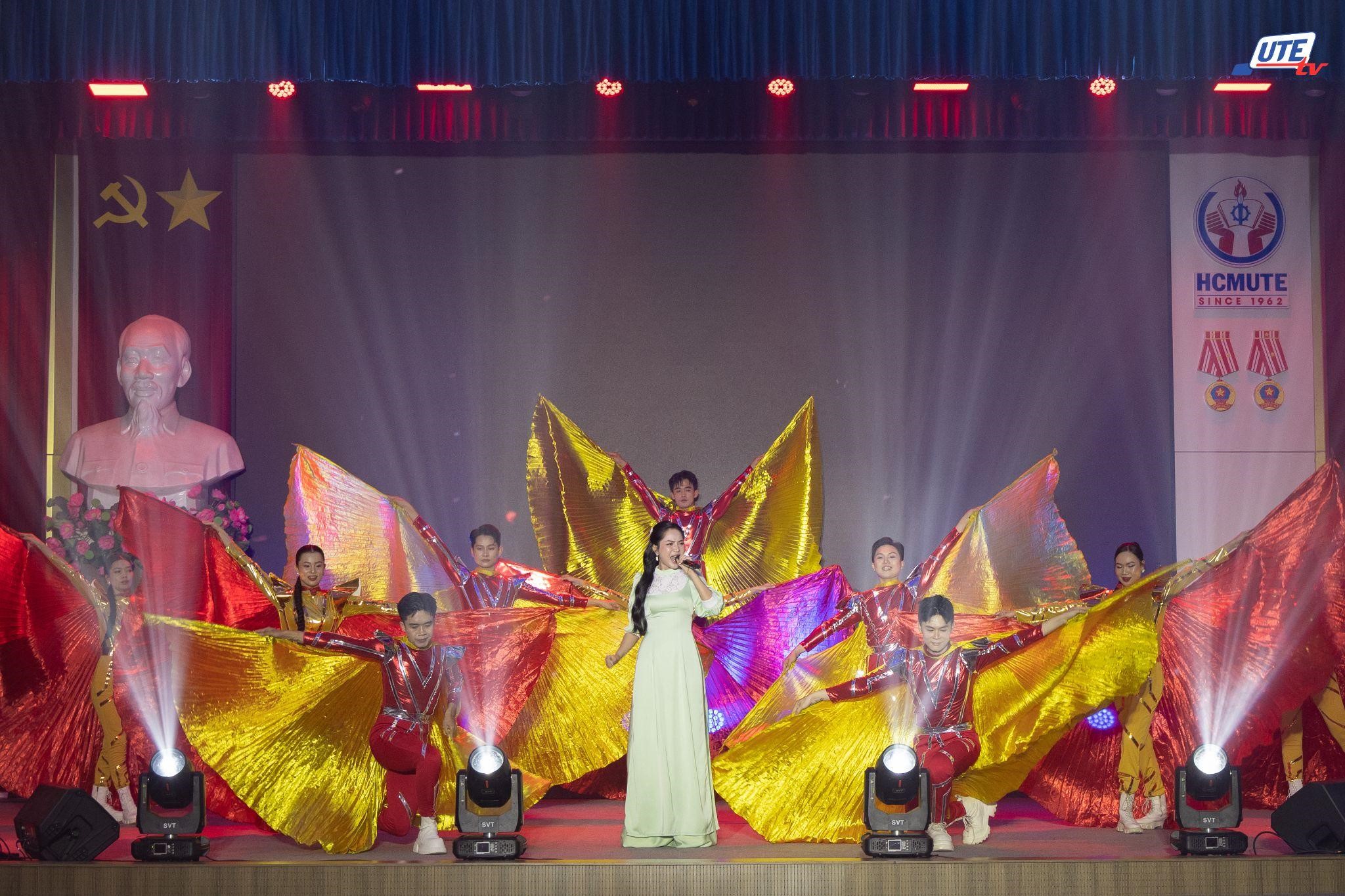 The program also featured the enthusiastic participation of many renowned artists, including Meritorious Artist Van Khanh, guitarist Ha Nguyen, and singers Phuong Thanh, Quoc Dai, Duyen Quynh, Kyo York, Huynh Loi, Tran Kim Lien, Hong Mo, Tanh Linh, Le Thu Ha, Quoc Anh, Minh Phuong, Quoc Tinh, Phuc Julie, among others. In addition, music and dance groups such as Group 135, Nhat Nguyet, Viva, Hai Au, together with HCMUTE student art clubs, delivered carefully choreographed and emotionally powerful performances that strongly conveyed the message of sharing and compassion.
