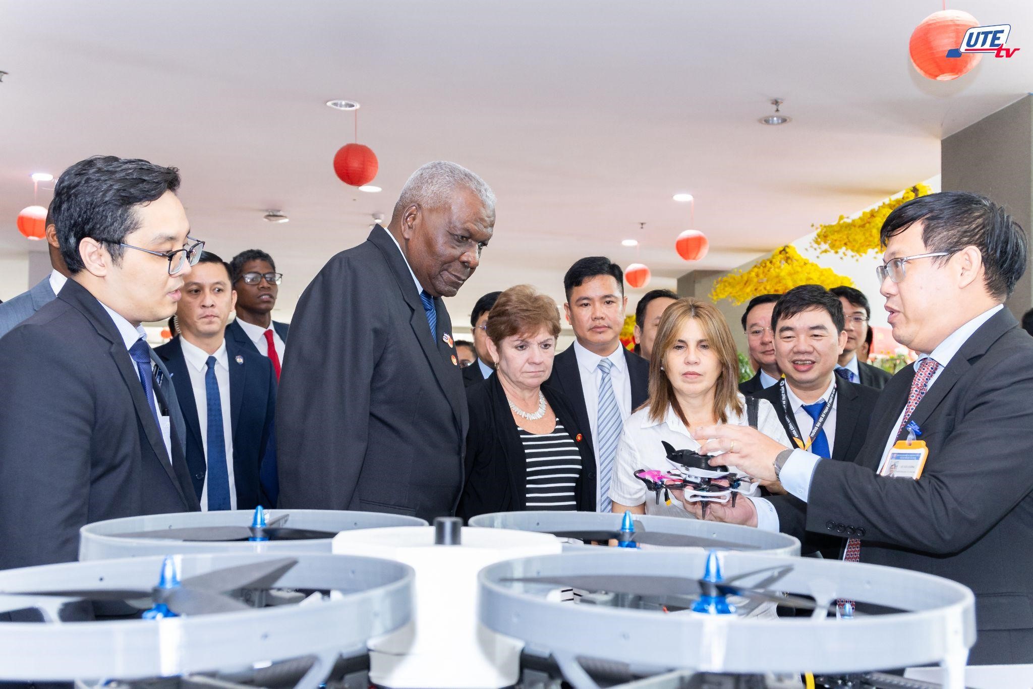 President of the Cuban National Assembly visiting HCMUTE’s high-tech agricultural innovation exhibits developed by lecturers and students