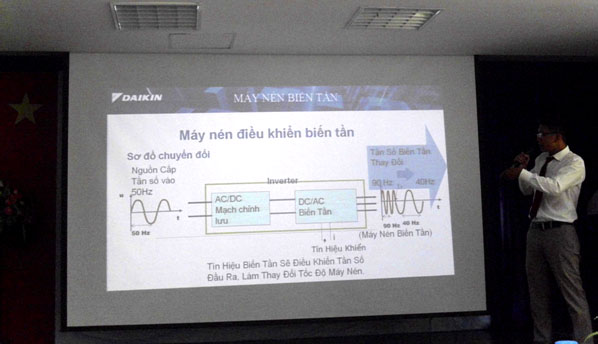 Mr. Pham Trung Kien is introducing new technology in Daikin air conditioning.